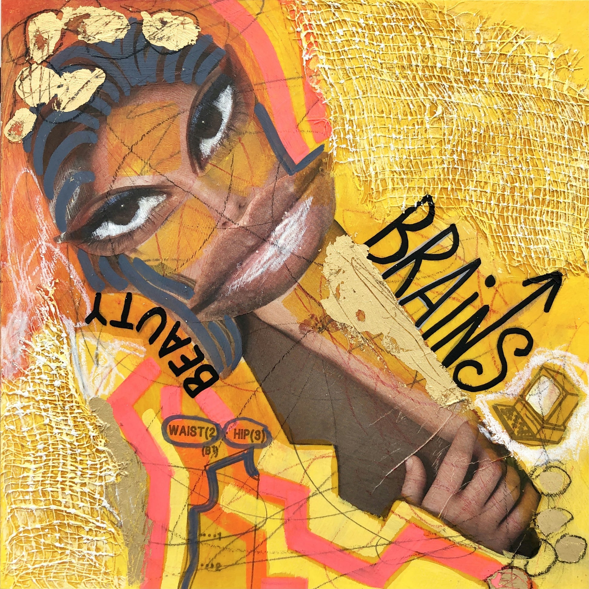 The IG Series examines how social media shapes the self-image of young women, blending collage and mixed media to expose the absurd pressures to be “beautiful,” “perfect,” and endlessly validated. Each piece unpacks the distorted ideals fed by digital culture—and the quiet struggle to reclaim an authentic voice beneath it all.