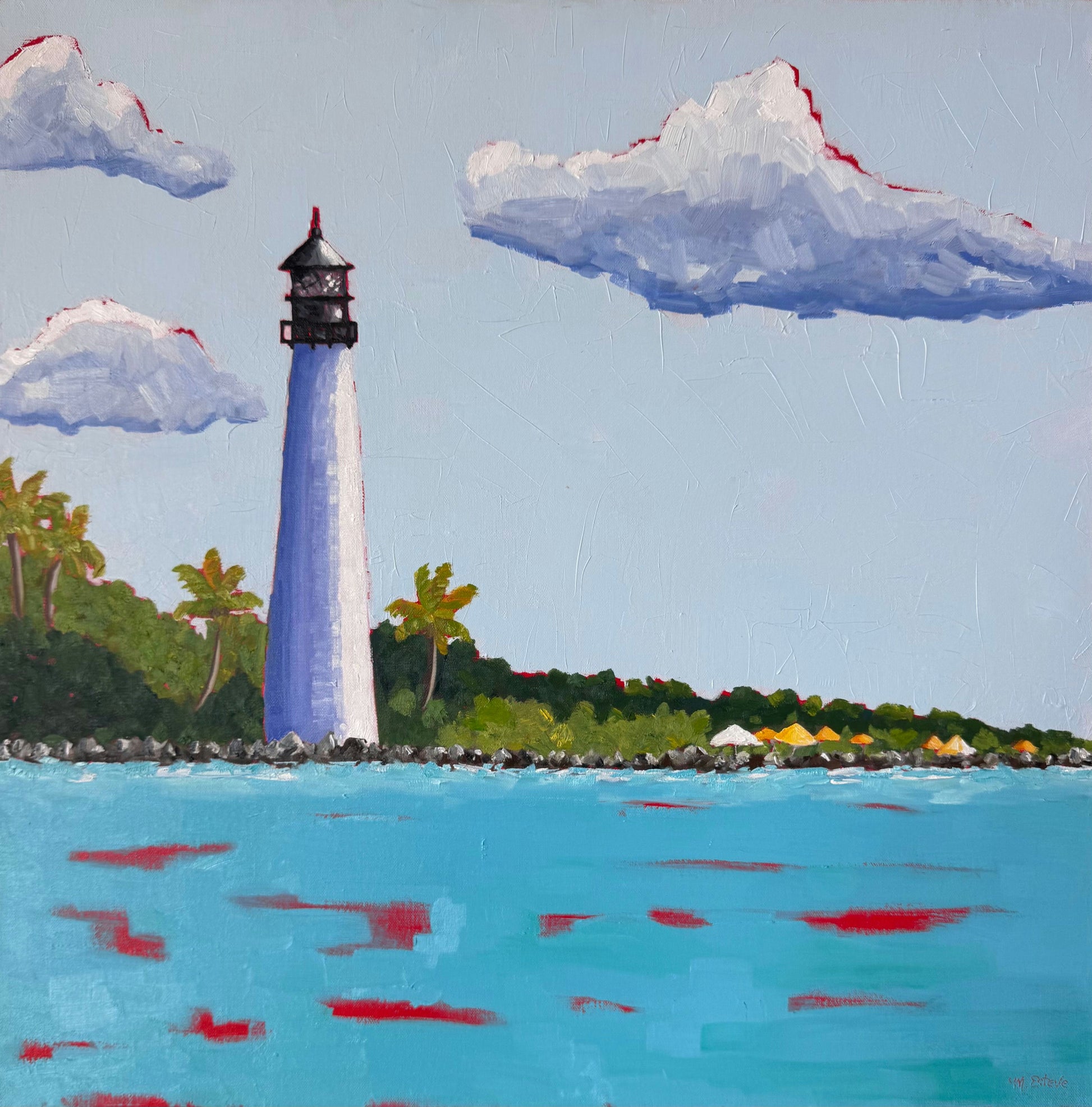 Expressive painting of the Cape Florida lighthouse in Key Biscayne as seen from the water