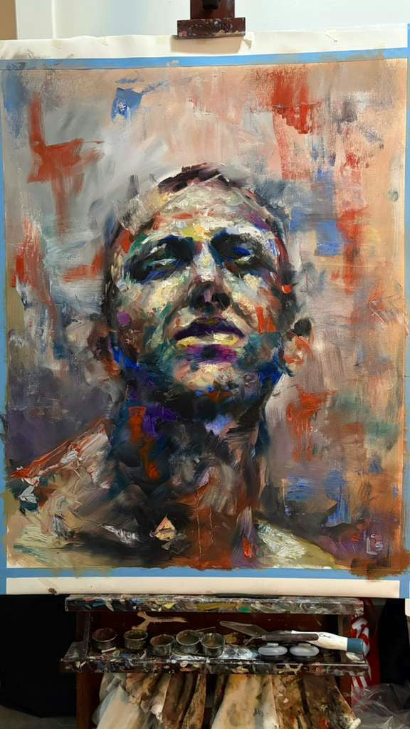 A fragmented vision between awakening and oblivion, where the face emerges from color as if escaping a dissolving dream.