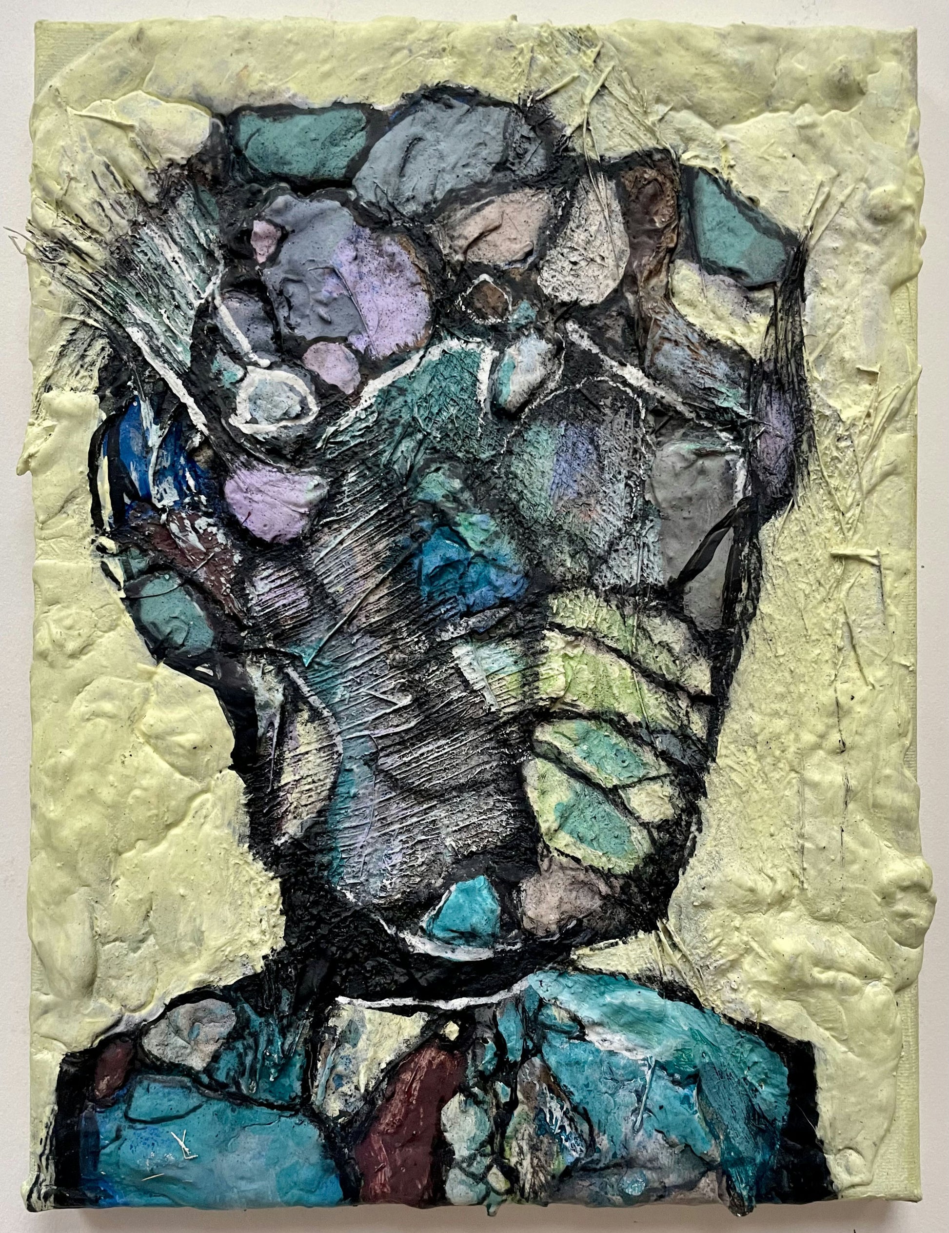 This painting is part of a series titled Hominidae that explores the conscience, instincts and complexities of the human condition.
