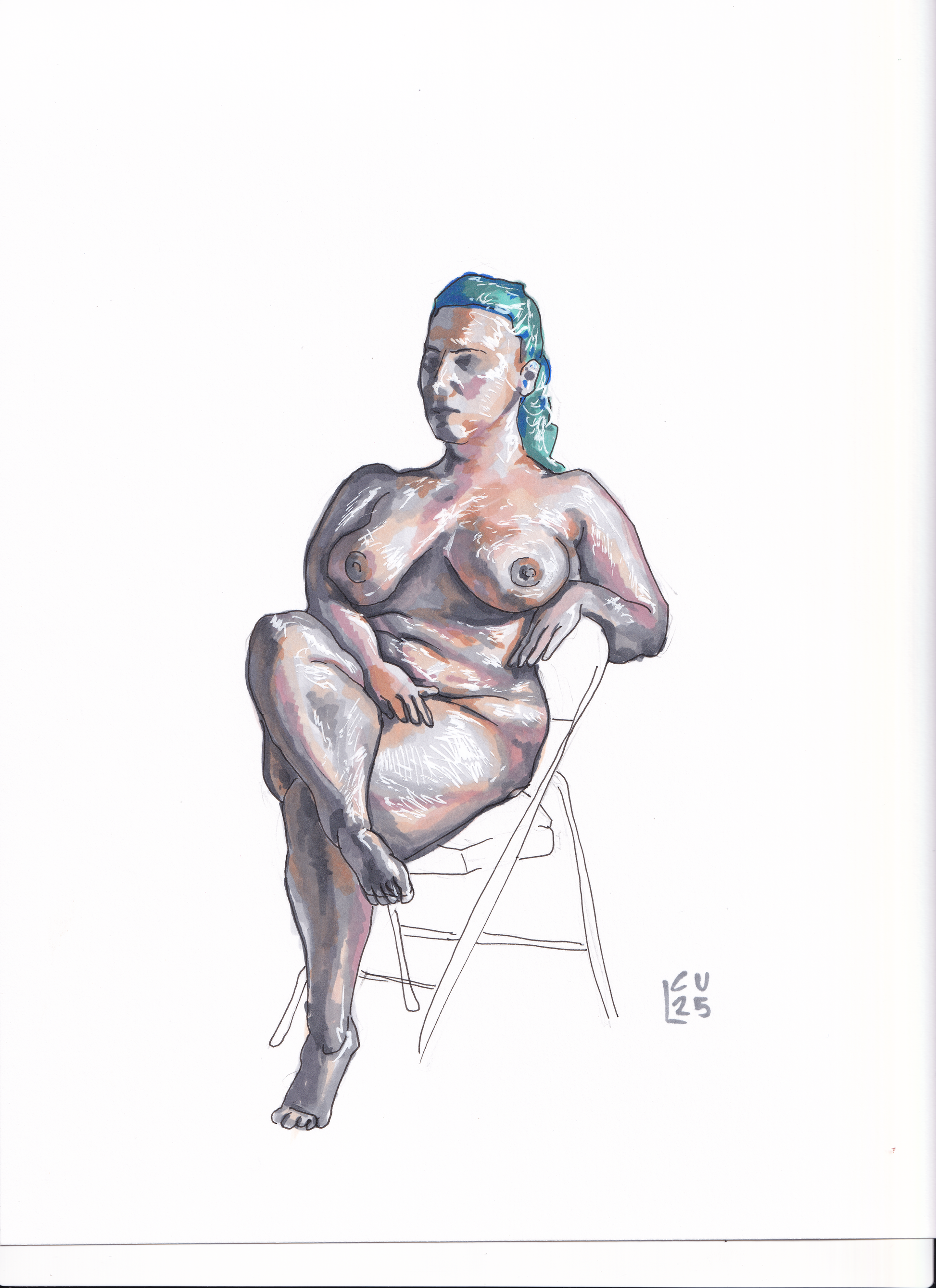 Rendered with alcohol markers on bristol paper, each figure becomes a vibrant surface where color replaces flesh: reds ignite tension, blues evoke silence, and greens pulse with inner life. These hues do not simply describe skin but embody states of being — vulnerability, strength, dignity, intimacy.