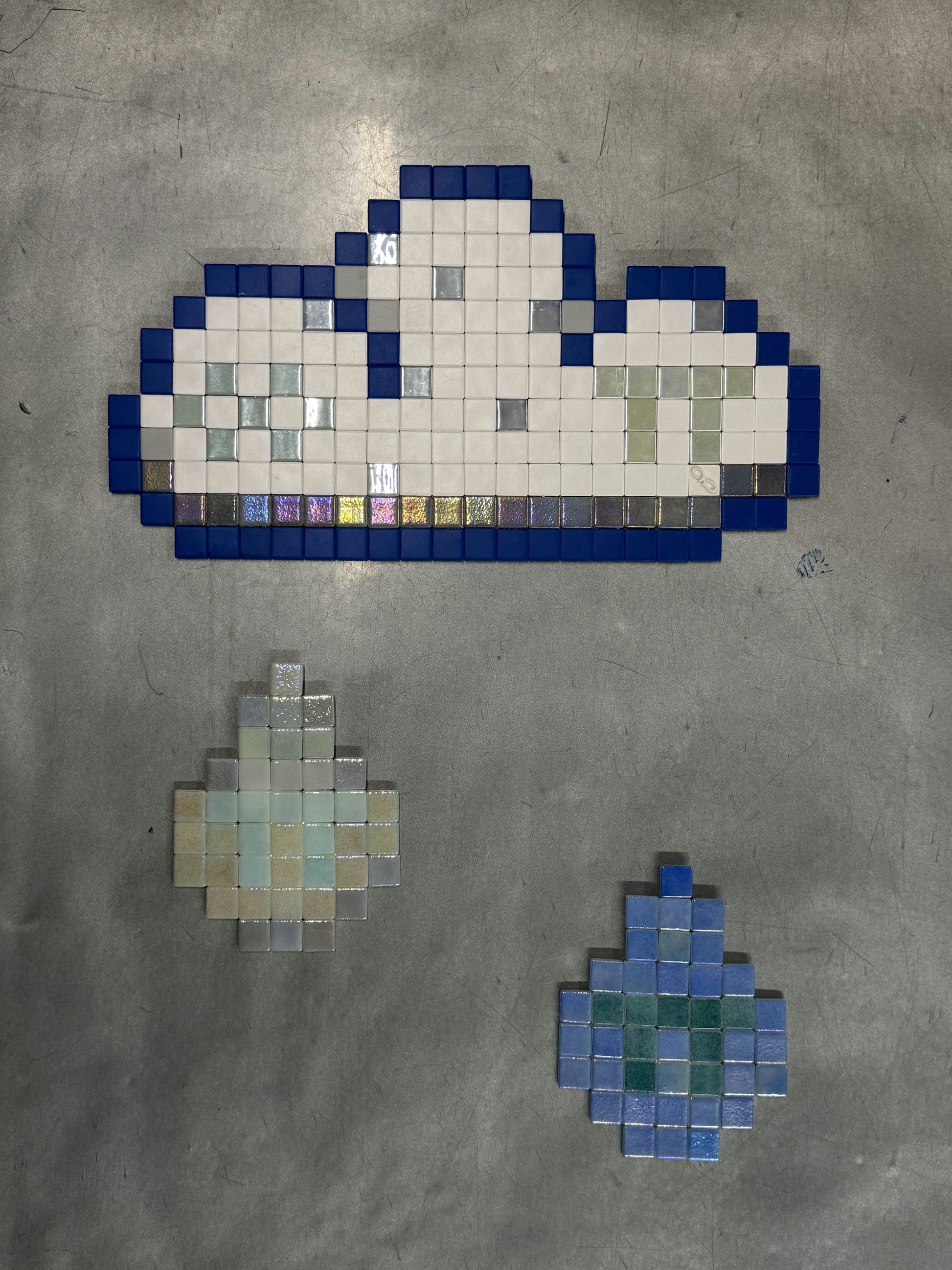 the cloud is 22in w x 12in h the drops can be placed at varied heights.