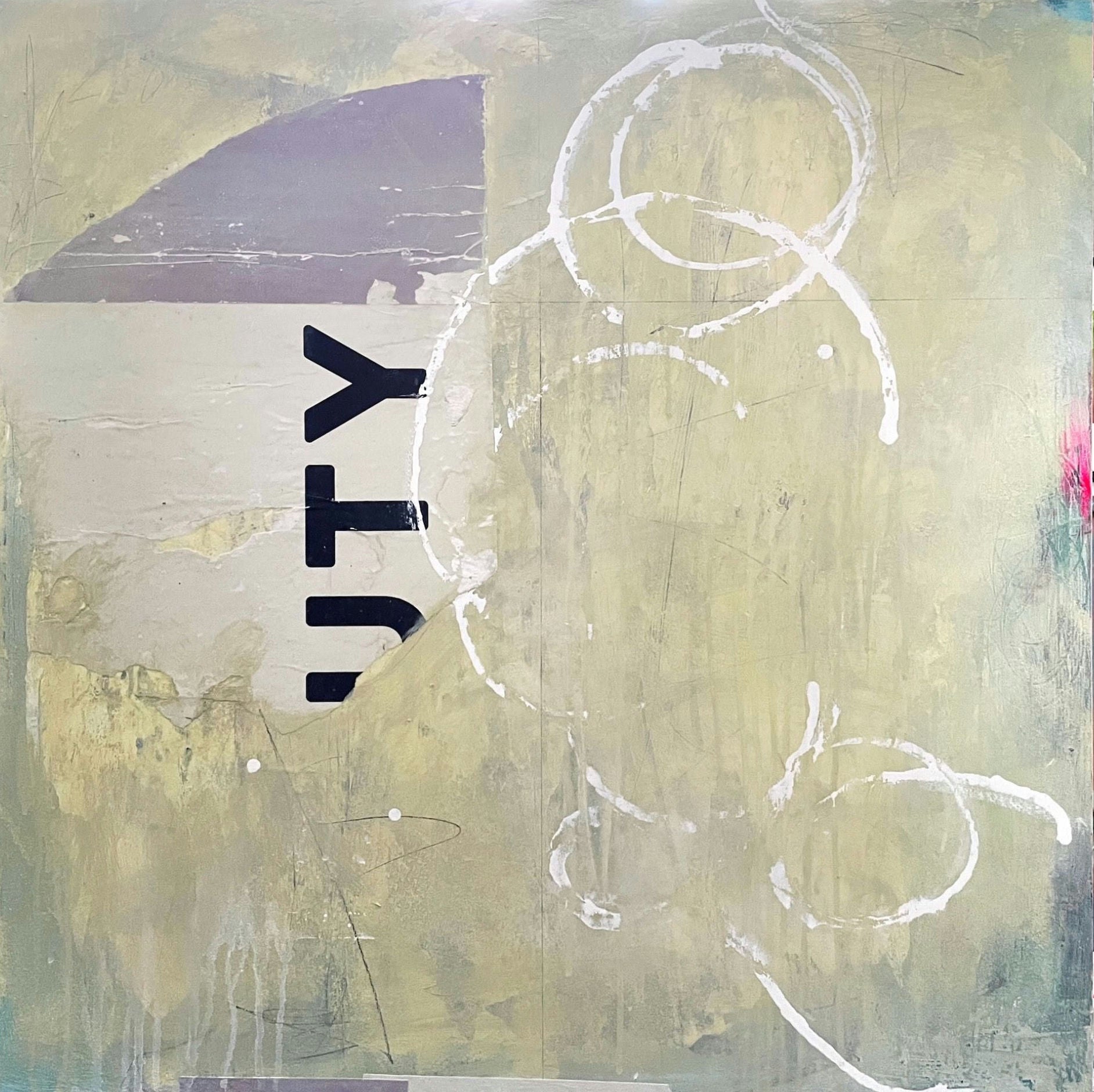 Working with muted earth tones and weathered textures, I layered paint and mixed media to create a surface that feels both contemporary and aged, like finding fresh graffiti on an old wall.