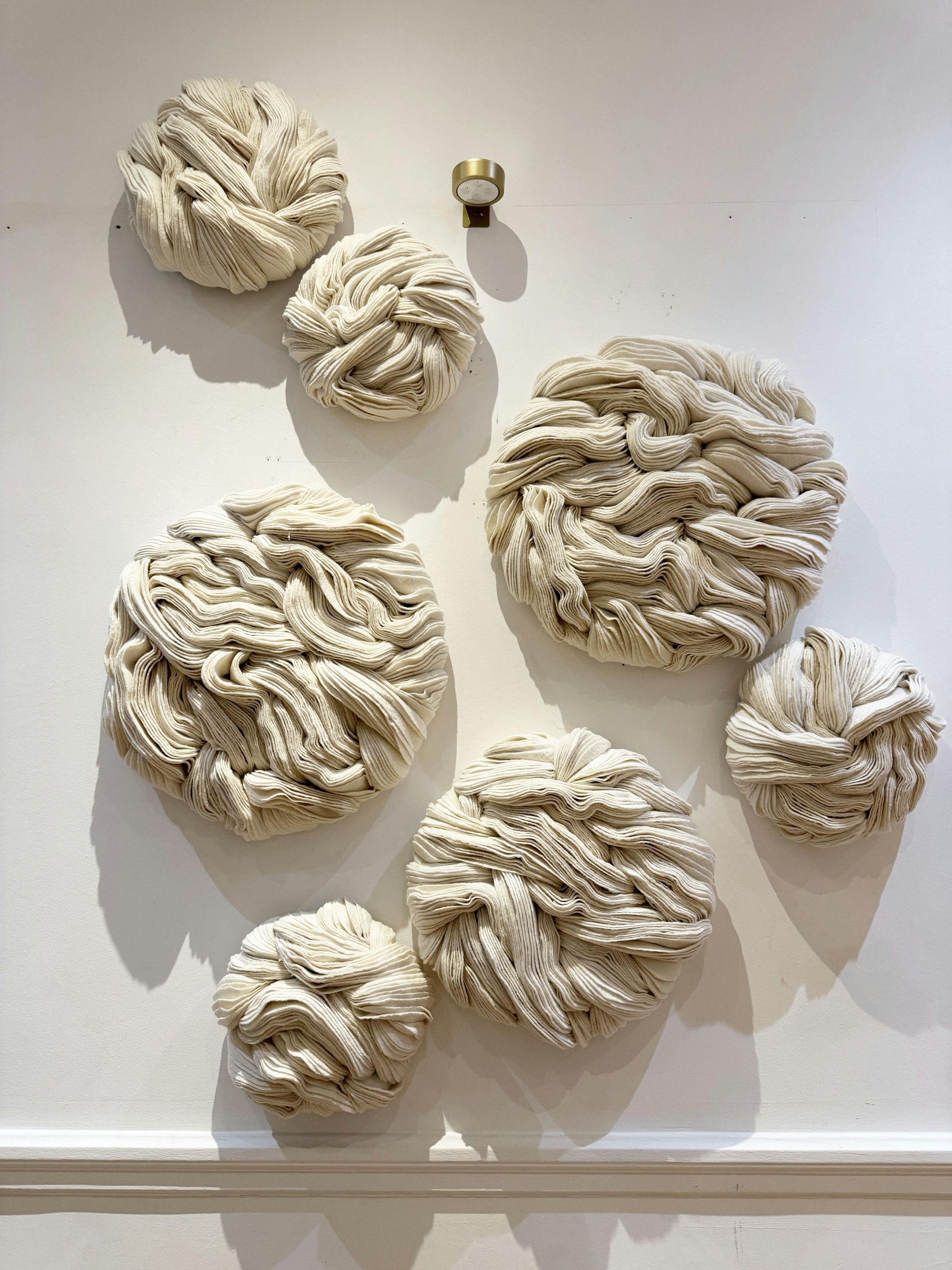 Where some emotions arrive like impact, others live in residue — in silence, in fabric, in light, in what is barely said but deeply felt. The work explores fragility, tenderness, and the invisible traces people and moments leave behind. Through soft layers, pale tones, and subtle relief, the pieces invite closeness rather than confrontation. They are not loud works. They ask to be felt slowly and softly.